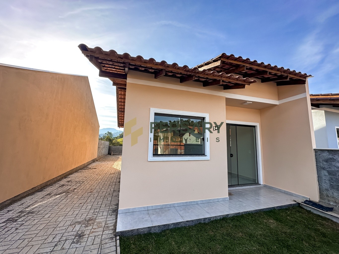 – Frente da casa com jardim.